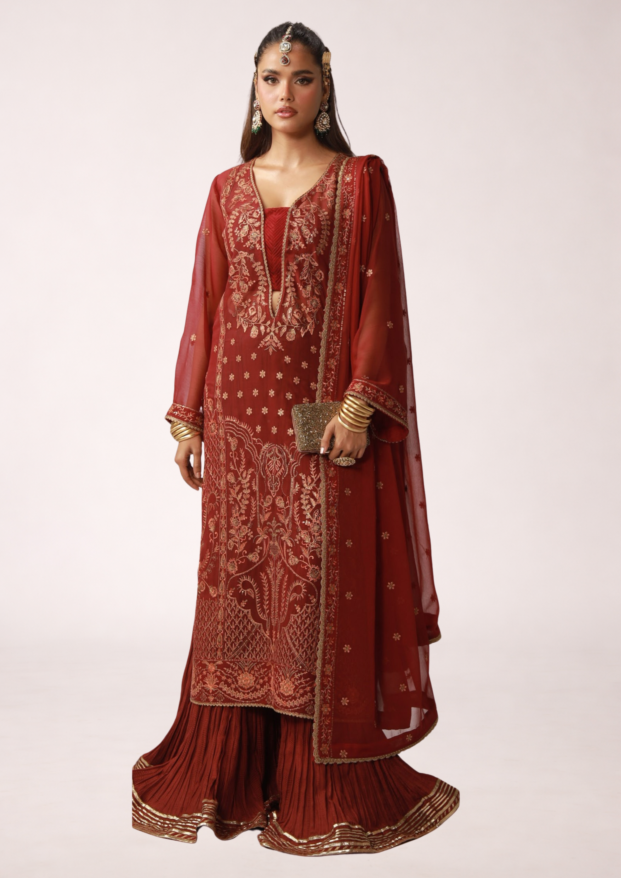 A delicately crafted chiffon ensemble perfect for festive occasions.